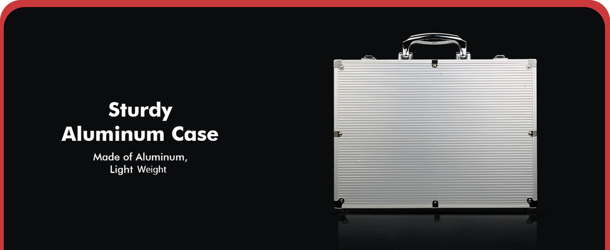 - PORTABLE ALUMINUM CASE - Embrace mobility with our premium aluminum case. Reinforced corners ensure sturdiness while dual latches secure your poker essentials. With compartments for organized storage and a swivel handle for convenience, this case is your perfect poker companion.