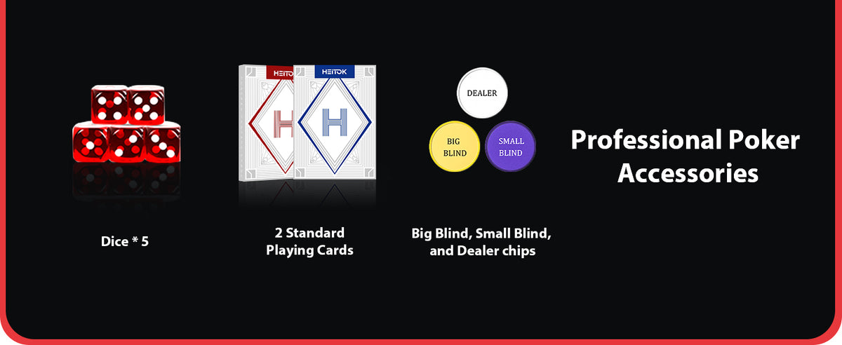 - EVERYTHING YOU NEED - For 2-10 players, ages 8 and up- this poker set includes 500 full Sized 11.5g weighted, 1.5" diameter, 1/8" thick Vegas-style chips, 2 deck of cards, 1 dealer button, 2 betting buttons, 5 poker dice.