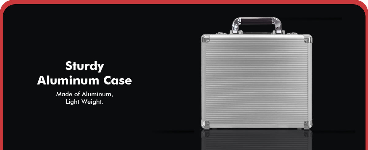 - Portable Aluminum Case – Embrace mobility with our premium aluminum case. Reinforced corners ensure sturdiness. In addition, it is also equipped with 6 plastic trays, which can neatly organize poker chips while protecting them from wear and damage